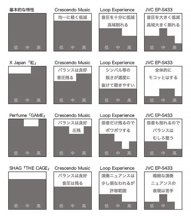 各モデルの聴こえ方の印象まとめ