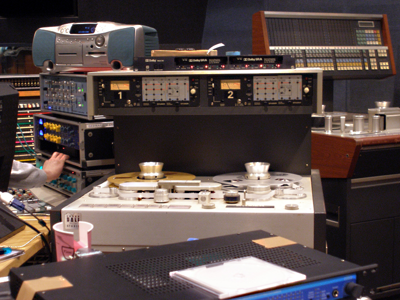 ステレオ・マスター・レコーダーの「スチューダーA80MKW」(中央)。右奥に見えるのはミックスダウン時の再生用アナログ・マルチトラック・レコーダー「スチューダーA820」だ