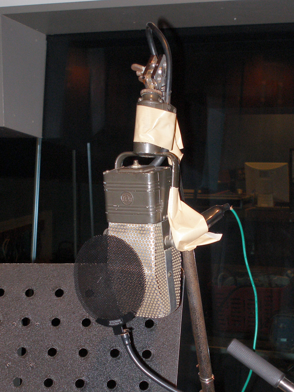 「キミガタメ」のボーカルで使用された「RCA 44BX」。ガムテープで留められているのはハムノイズを止めるためのアース線だ