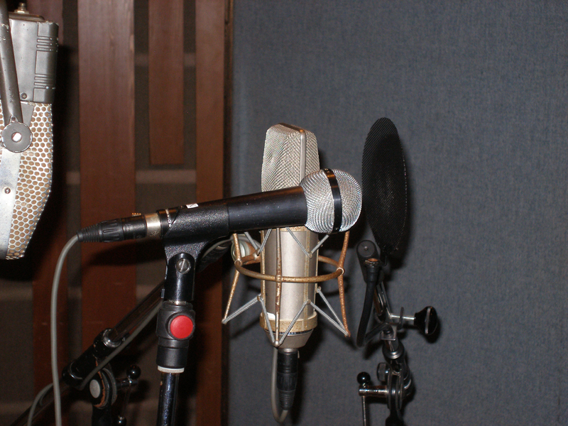ボーカル録音中はいくつかのマイクを準備し、楽曲へフィットするものを選んでいた。画像は「星想夜曲」中のもので、採用されたのは手前に映る「ベイヤーダイナミックM500」である