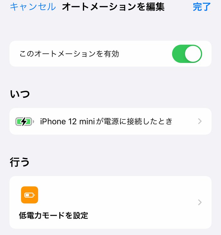 いつ「iPhoneが電源に接続したとき」→行う「低電力モードを(オンに)設定」