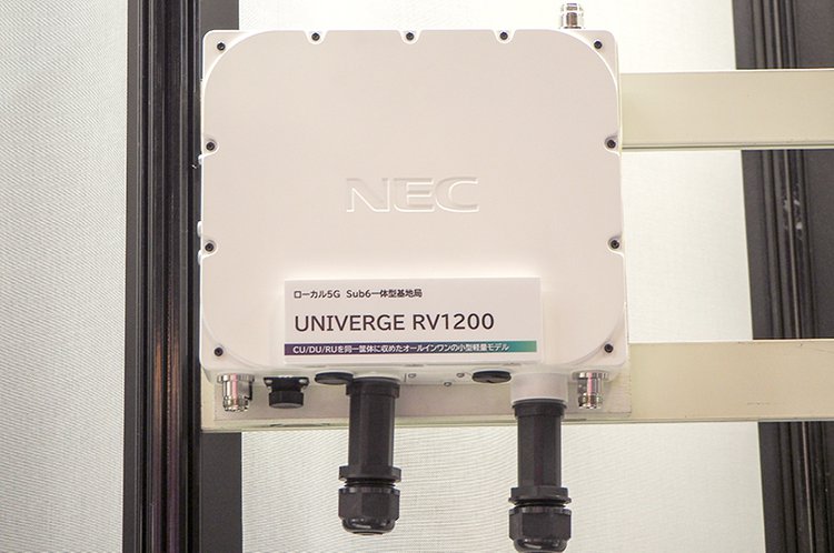 NECが2022年に提供開始したローカル5G向け基地局「UNIVERGE RV1200」。無線部分と制御部分を一体化して小型化、かつ100万円を切る低価格を実現したことで高い評価を得ている