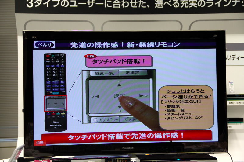 上位機にはリモコンにタッチパッドを搭載。フリック操作が可能だ