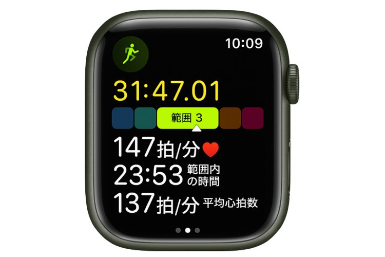 WatchOS9で実装された「心拍ゾーン」表示機能。Apple Watchで計測してきた最大心拍数に対する割合を表し、ワークアウト中の身体負荷をオンタイムで知ることができる
