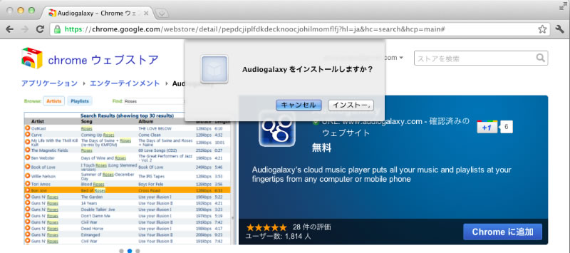 クラウド型音楽配信サービス「Audio Galaxy」も、chrome ウェブストア経由でWebアプリとして入手できる