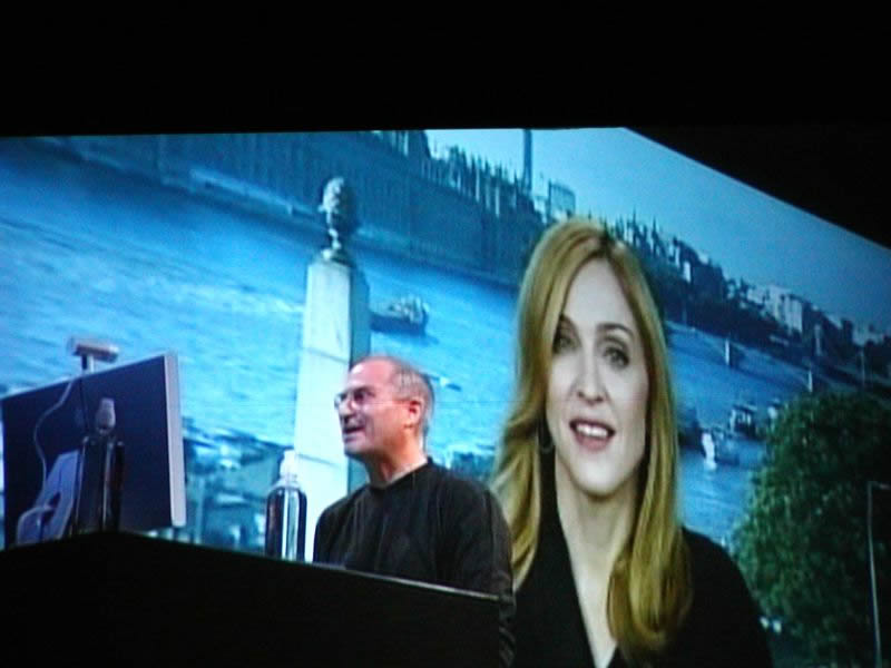 初代iPod nanoを発表した際のジョブズ氏。マドンナがビデオ出演した