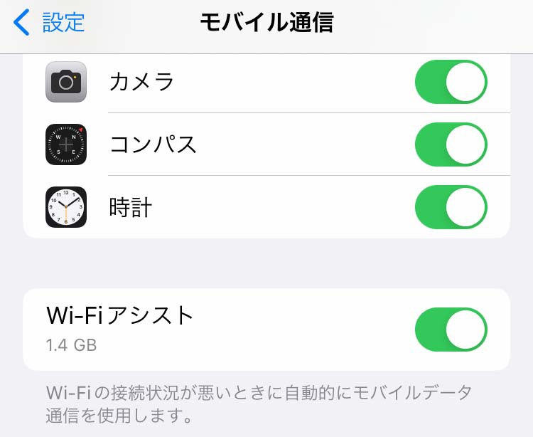 iOSでは「Wi-Fiアシスト」という名称の機能が働いている可能性がある