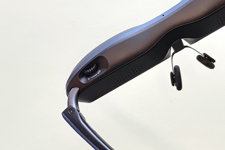 0.00Dから-6.00Dまでの近視補正機構を調整するダイヤルが左右のレンズ上に備わっている