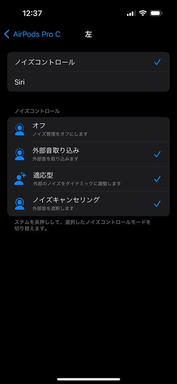 イヤホンのリモコン操作からANCと外部音取り込み、適応型モードなど2項目以上の切り換え設定が任意に選べる