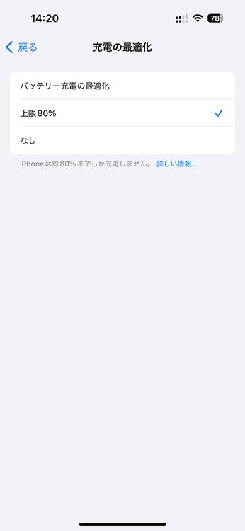 現状ではiPhone 15シリーズのみ、充電の最適化に[上限80%]の選択肢が追加されています