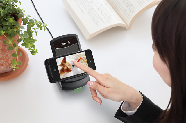 使用イメージ。ケーブルを繋ぐのではなく、置くだけで充電が行える(写真はマクセル「WP-QIST10」)