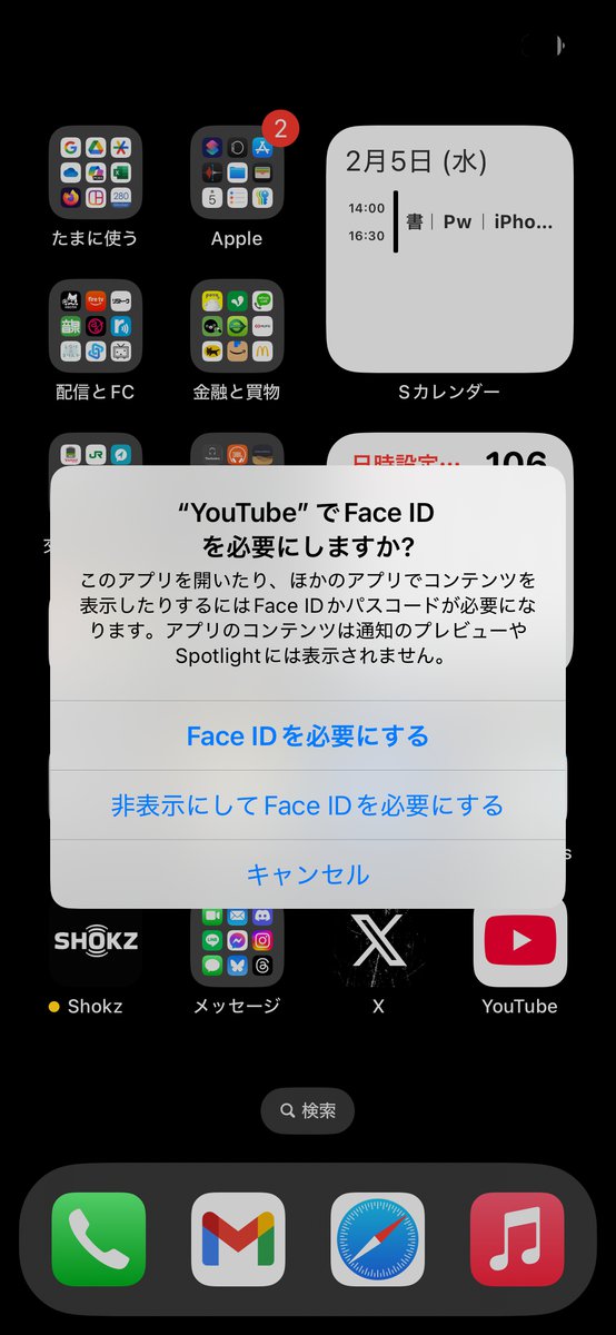 続いてのメニューで[Face IDを必要にする]を選択すればロックされます