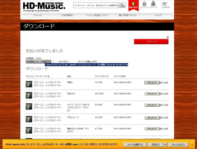 ダウンロード画面。1曲ずつリンクをクリックしてダウンロードする方式となる