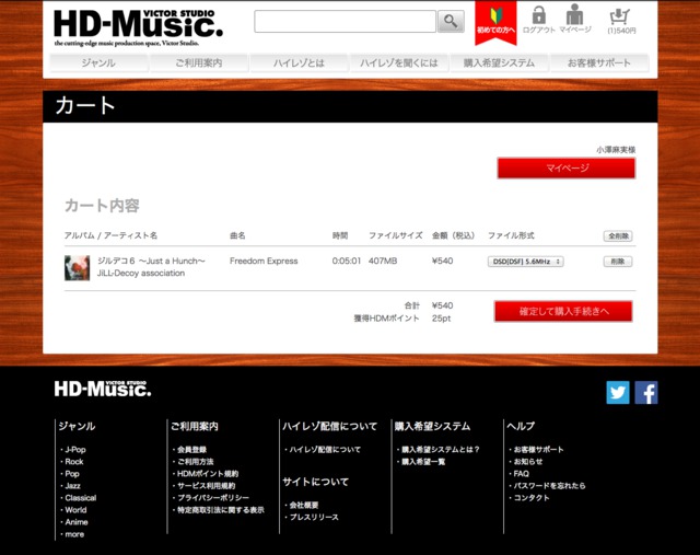 HOME > レビュー > コラム記事一覧 HD-Music.でハイレゾ音源を買ってみた。ハイレゾ再生のキホンも解説 ファイル・ウェブ編集部 2014年11月27日 前の写真へ 次の写真へ カートの内容を確認し(写真左)、注文を確定する 前の写真へ 次の写真へ この写真の記事へ 関連リンク VICTOR STUDIO HD-Music. VICTOR STUDIO HD-Music.特設サイト