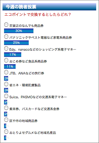 今週の読者投票:エコポイントで引き替えるなら「百貨店商品券」か「家電系商品券」