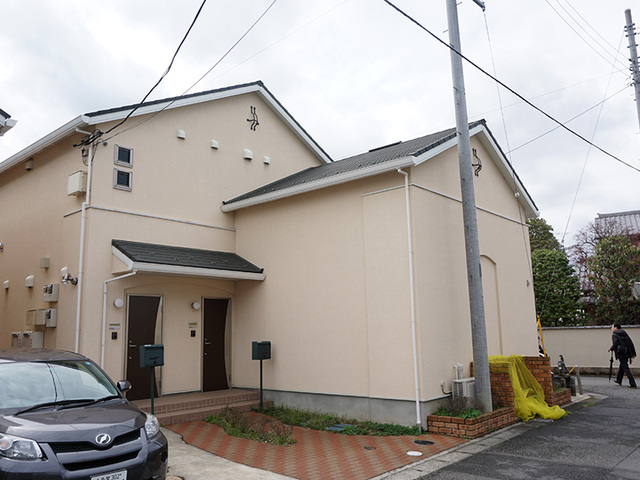 入居者用の玄関口。右側に出っ張っている部分がスフォルツァートの試聴室にあたる