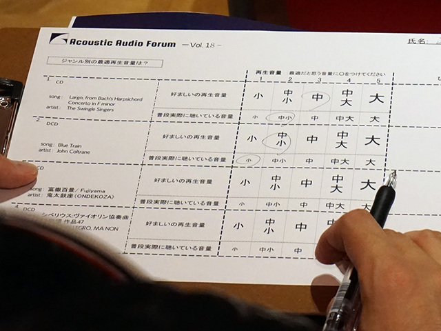 ふだん聴いている音量、好みの音量を参加者が記入していく試みが展開された