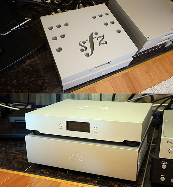 スフォルツァートの最上位ネットワークプレーヤー「DSP-01」。写真上が今回使用した完成品で、下が前回までの試作機。外見上では天板の放熱対策などが異なっている