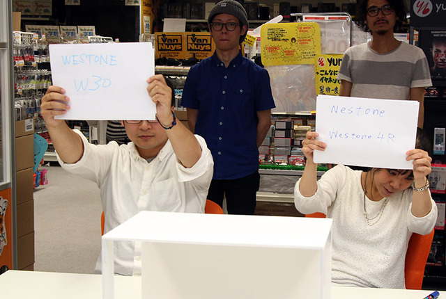 HOME > レビュー > コラム記事一覧 専門店スタッフに無謀な挑戦状 【バトル】手触りだけでヘッドホンのモデル名を当てられるか? e☆イヤホンさんに挑戦! 編集部:風間雄介 2015年07月13日 前の写真へ 次の写真へ 回答ドン! 残念ながら2人とも不正解… 前の写真へ 次の写真へ この写真の記事へ 関連リンク e☆イヤホン