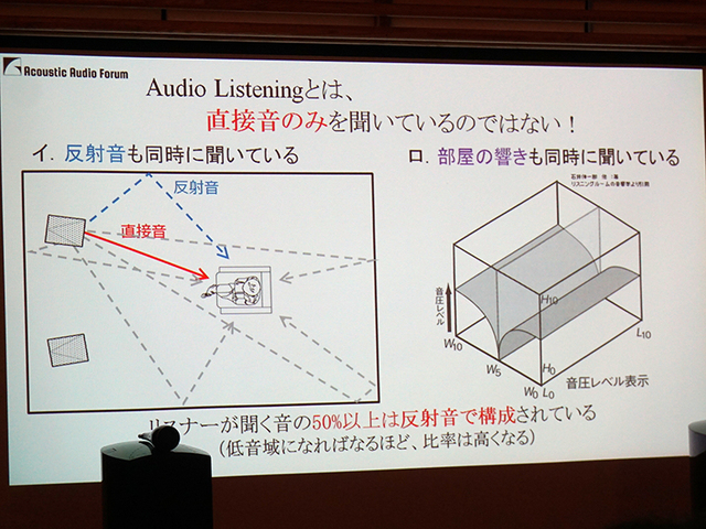 我々が聴いている音の5割以上は反射音で構成されていると説明