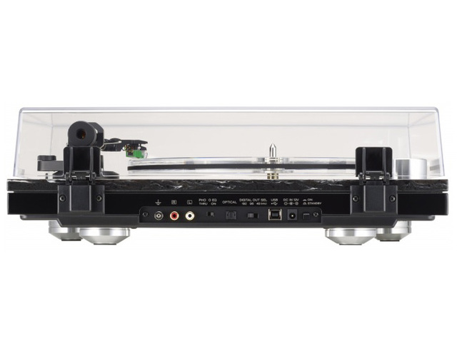 背面に光デジタル端子やUSB端子などを備えており、読み取ったアナログレコードの信号を最高192kHz/24bit PCMとしてデジタル出力することができる