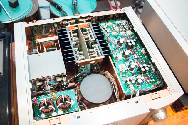 PM-10の筐体内部。中央後部に見えるヒートシンクに背中合わせで配置されているのがHypex「Ncore」だ
