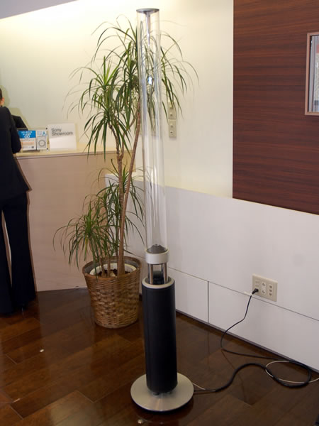 有機ガラス管の振動で360度に音を放射する“Sountina”