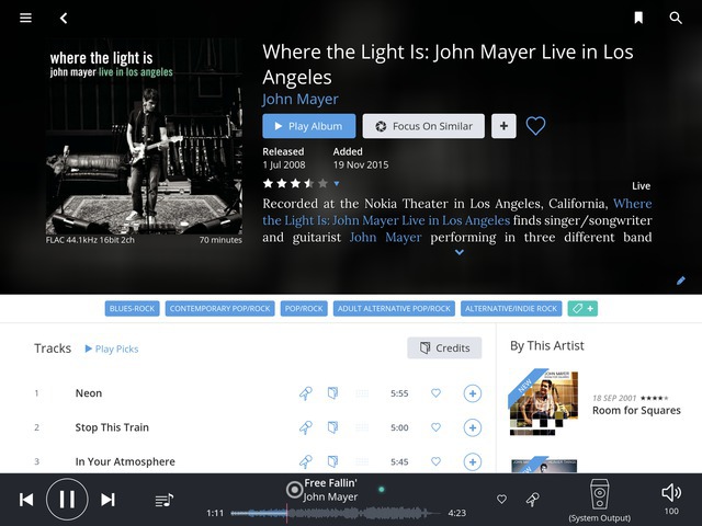 Roon(iPadアプリ)の画面(2015年当時のバージョンのもの)