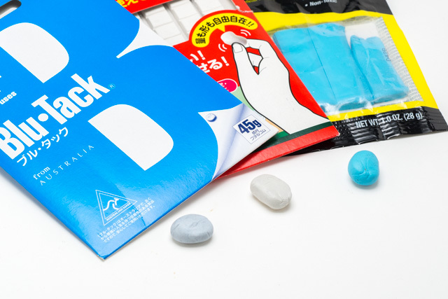 貼ってはがせる粘着ラバー。ポスター貼りや模型製作用に売られていることが多い