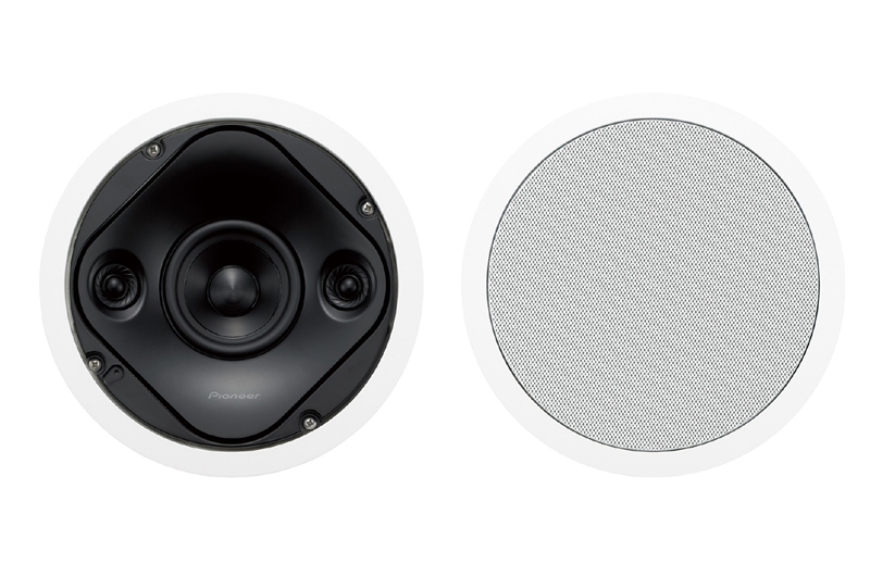 インシーリングスピーカー「S-ICH200D」。取付穴サイズ200mmで、防滴&1台でステレオ再生可能な仕様