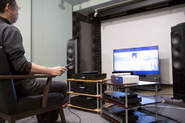 取材は、4K液晶テレビ、AVアンプ、イネーブルドスピーカーを使用した5.1.2chのスピーカーシステムで行いました。検証するレコーダーは最新ソフトウェアにアップデートした状態に。テレビは、「シネマプロ」モードで視聴しました