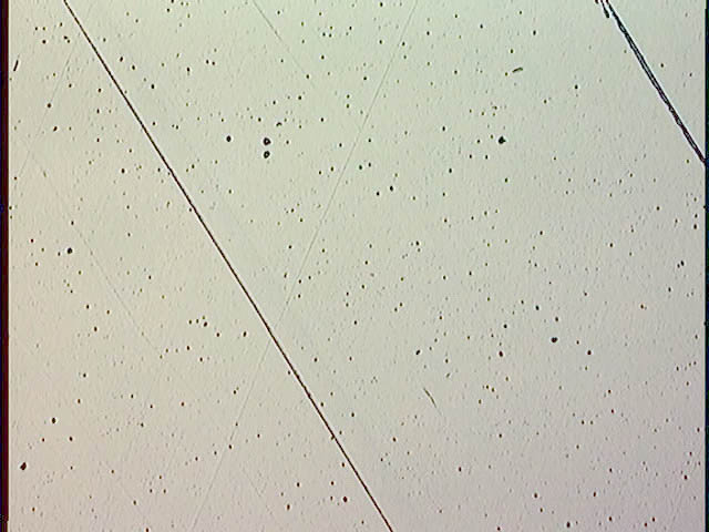 顕微鏡で覗いてみても、ほぼキズが付いていないことがわかる。(写真の縦幅=300μm)