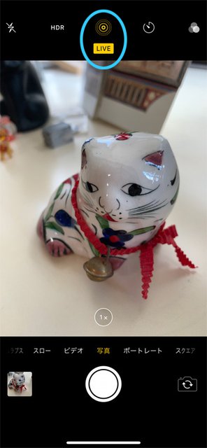 カメラアプリの「写真モード」を選択。画面上部のアイコンをタップするとLive Photosに切り替わる
