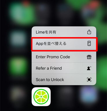 コンテクストメニューに並ぶ「Appを並べ替える」を選択するとアプリの削除などができる