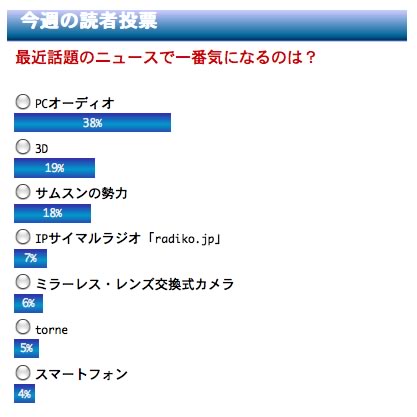 今週の読者投票:2010年はPCオーディオ元年 − 3Dやサムスン関連も注目度高し