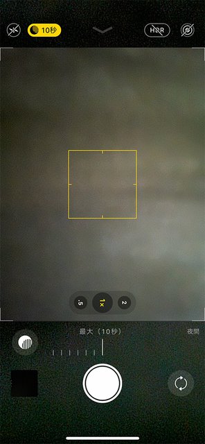 ナイトモードのアイコンをタップすると露出時間の微調整が行える