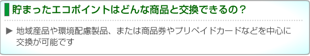 具体的には、SuicaやPASMOといった交通機関カード、Edy、nanacoなどの電子マネー、ギフトカード、地域型商品券などのほか、全国各地の地域産品、ベルメゾンや楽天市場のエコ商品などあらゆるカード・商品と交換が可能です。交換商品リストは事務局のホームページで確認できます。また主要な商品、商品券等のリストを掲載したリーフレットも用意され、7月1日以降、全国の家電量販店や郵便局で入手することができます。