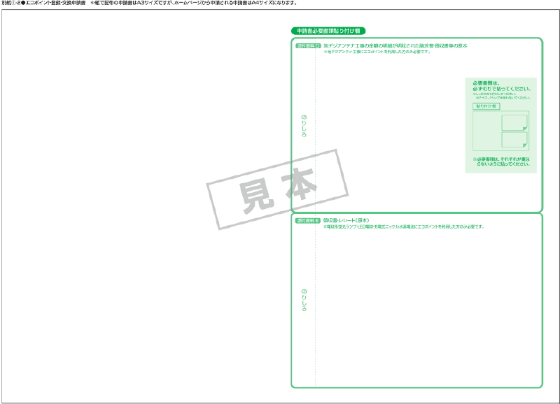 エコポイントの登録・商品交換申請書の見本(2ページ)。 |