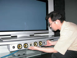 5.1chではリアにもトールボーイを使用する。前後が同一のスピーカーなのでつながりがよく、空間の一体性が高い。センターも同一のユニット構成なので、いっそう全体の統一感に富んでいるようだ。