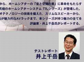 また爆発音など衝撃性の強い効果音には低域の量感が利いている。サブウーファーが濁りのない重量感を再現し根底から支えるため、見かけとは反対に線の太い力のこもった重低音が聴かれる。音楽音も切れがよく、効果音と連動して周囲から包まれる感触が強い。映画の空間に浸れる印象だ。