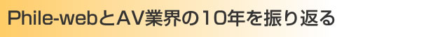 | Phile-webでは1999年のサイト開設以来、数々の新コンテンツを立ち上げるとともに、累計数万本のニュースを通じてAV/オーディオの最新情報をお届けしてきました。この10年のAV業界のできごとと、Phile-webのこれまでの歩みを振り返ります。 |
