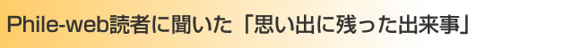 このほかにも多数のご意見を頂戴しましたが、スペースの都合で全てを掲載できず非常に申し訳なく思っています。AVファンの皆さんの熱い思いを拝見できて編集部も思いを新たにしました。これからの10年に向けて、もっともっと皆さんに有意義な情報をお届けできるように頑張っていきますので、今後もPhile-webをよろしくお願いします! |