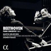 マンゼ指揮ベルリンドイツ響とヘルムヒェンのベートーヴェン協奏曲集の第2弾。偶然かどうかはわからないが、初期作品はスタジオ、後期作品はホールでのセッション録音という組み合わせも前回通りだ。いずれもオーケストラの重心は高めで、重厚さよりも軽快な動きを重視したバランス。ピアノ独奏もオーケストラも切れの良さと疾走感が際立ち、ヘルムヒェンとマンゼの個性が相乗効果を生んでいる様子がうかがえる。オケとピアノのバランスはコンサートで体験する音量感に近く、独奏を強調しすぎていないことに好感を持った。