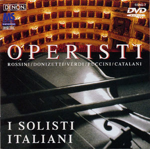 | 曲目 | ロッシーニ(ガンバロ編):《アルジェのイタリア女》序曲/ロッシーニ(ガンバロ編):歌劇《セビリアの理髪師》より〜カヴァティーナ「おいらは町のなんでも屋」〜アリア「かげ口はそよ風のように」〜嵐/ドニゼッティ:弦楽四重奏曲第18番より第一楽章(《シャモニーのリンダ》序曲)/ヴェルディ(ムツィオ編):歌劇《椿姫》より第三幕への前奏曲/ヴェルディ(ムツィオ編):歌劇《ルイザ・ミラー》より〜アレグロ・ブリランテ/〜ああ、ルイーザ〜アリア「穏やかな夜には」/プッチーニ:菊/ヴェルディ(ファリーナ編):ワルツ/カタラーニ:夕べに/ロッシーニ:《タンクレディ》序曲 |