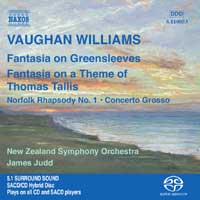 | 曲名/その他 | タリスの主題による幻想曲/ノーフォーク狂詩曲 第1番 ホ短調/交響的印象「沼沢地方にて」/「グリーンスリーブズ」による幻想曲/合奏協奏曲 イギリス音楽入門決定盤にして、かつマニアの皆様にも存分にお楽しみいただける1枚の登場です。ヴォーン・ウィリアムズはイギリスの裕福な家庭に生まれ(父親は貴族、母親は食器で有名なウェッジウッド家の出身)、いにしえのイギリスの音楽やイギリス民謡を素材に取り上げることもしばし、目を閉じて耳を傾ければ、イギリスの自然や町並みが自然と目に浮かぶような作品ばかりで、まさにイギリス音楽の権化ともいうべき存在です。そんな彼の比較的小規模な管弦楽作品を集めてみましたが、いずれの曲も抒情の極致、特に(弦楽のみの曲も含め)豊麗さと渋みを兼ね備えた弦の調べの美しさは、比類ありません。NAXOSならではの特別価格により、手軽にSACDをお楽しみ頂けます。 |