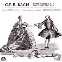 C.P.E.バッハ:4つの管弦楽のシンフォニア/チェロ協奏曲/アンドルー・マンゼ