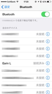 イヤーチップをカプセルから取り出すと、自動的に電源がONになる(逆に、しまうと自動的に充電モードになる)。プレーヤーのBluetoothメニューから「EARIN L」を検索。EARINは左側イヤーチップがマスター、右側がスレーブになっているので、「EARIN L」にペアリングすれば音楽を聴くための操作は完了だ。