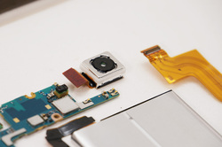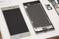 MWC2017のプライベートブースではXZ Premiumのカットモデルも公開された。本機では内部の回路基板の配置も大きく手を入れているという。基板のシェイプを「I型」として、スマホ全体を内側で支える幹のようにして強度を確保した。4K/HDR再生時の放熱対策として、ディスプレイの裏側にグラファイトシートを敷いてディスプレイからの熱をクールダウンする。