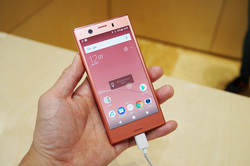 筐体のメタル素材は強度を保ちながら厚みを薄くしたことで、本体が薄型になって片手持ちによる操作が一段と手に馴染みやすくなった印象だ。外形寸法は同じ約5.2型のXperia XZsの約72W×146H×8.1Dmmに対して、XZ1は約73W×148H×7.4Dmmと奥行きサイズを若干薄くした。質量も約161gから約156gに計量化されるという。
