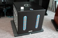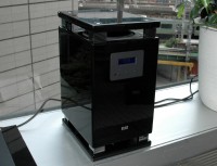 もう一つ展示されていた新サブウーファー「SUB 2010 BT」は幅15cm×高さ21.8cm×奥行き17.8cmという非常にコンパクトなモデル。年内に発売予定で価格は157,500円(税込)。115mmASコーンウーファーを2基搭載しており、出力40Wのアンプはのベースドライバー駆動用に2つ、さらにサテライトスピーカー用に2つ搭載。計4つのアンプを内蔵している。またブルートゥース(A2DP)に対応しているのも特徴となる。